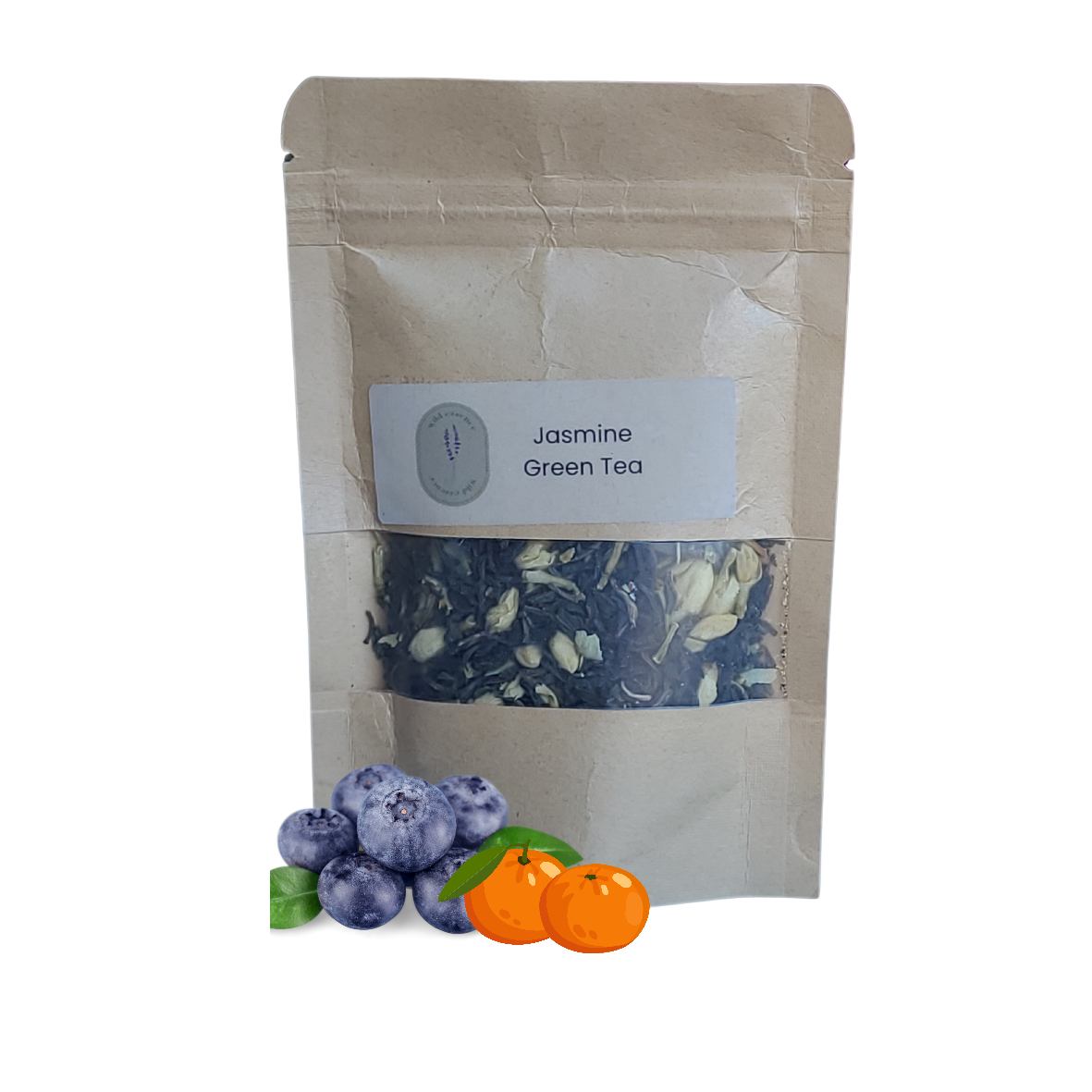 Ingredients: Organic White Tea, Organic blueberries, blueberry flavoring, organic tangerine, organic hibiscus..
